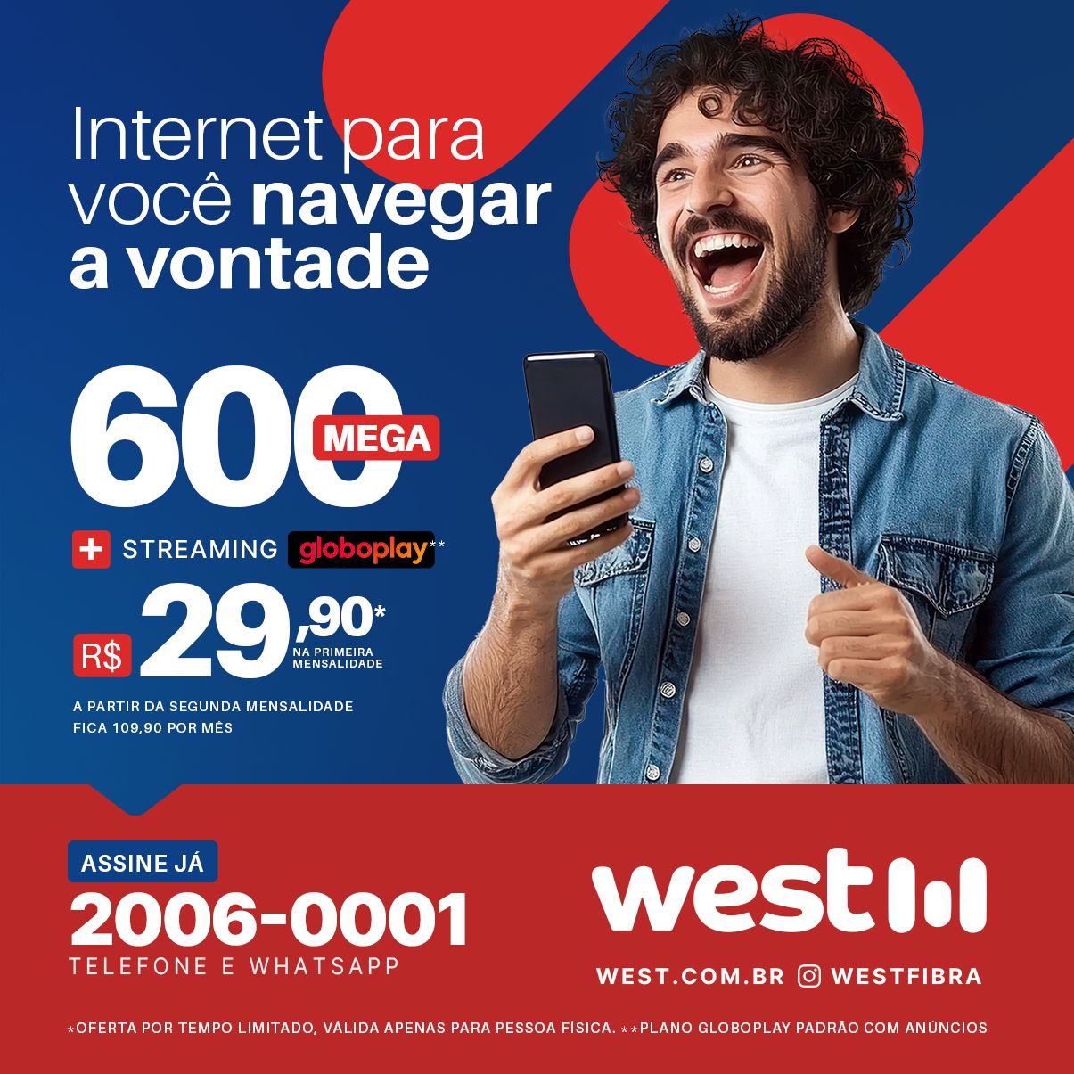 Assista a filmes e séries, canais ao vivo, desenhos, esportes e maratone a vontade na TV, computador, celular ou tablet. Com a West fibra você curte os melhores conteúdos em alta definição sem se preocupar com travamentos e interrupções.